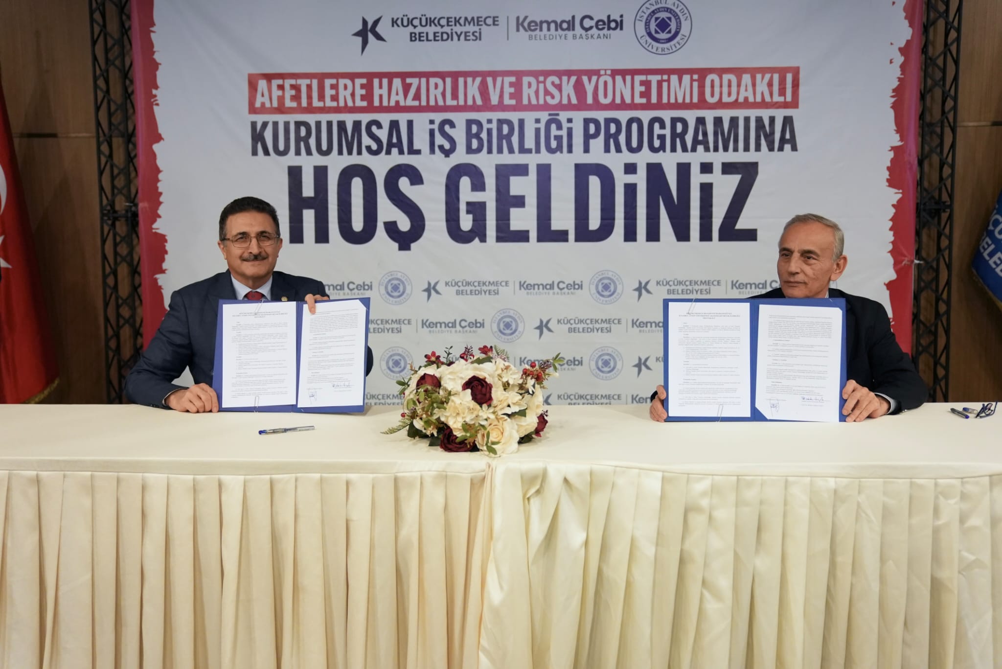 Afetlere karşı toplumsal farkındalığın artırılması, doğru ve güvenilir iletişim modellerinin geliştirilmesi ve yerel yönetimlerin bilimsel bilgiyle desteklenmesi hedefleri üzerine geliştirilen protokolün imza töreni Küçükçekmece Belediye Başkanı Kemal Çebi ve İstanbul Aydın Üniversitesi Rektörü Prof. Dr. İbrahim Hakkı Aydın’ın katılımıyla gerçekleşti.