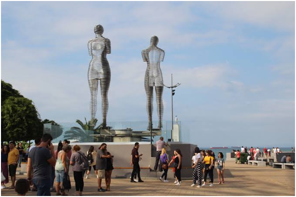 Batum’un beni belki de İlk şaşkınlığa uğratan tarafı “Ali ve Nino heykelleriydi.” Televizyonda kuş bakışı bir çekim ile gösterilen bu heykellerin devasal olduğuna dair bir inancınız var ise, bundan vazgeçmek zorunda kalacağınızı üzülerek belirtmek istiyorum. Maalesef, medyanın aldatması sebebiyle, bu heykellerin dikine uzanan, fazlasıyla yüksek ve şehrin bir çok noktasından görülebilecek kadar görkemli olduğunu düşünüyordum. Rotasını doğru vermek gerekirse, Ali ve Nino, Batum sahil şeridinin en sonunda konumlandırılmış. Dolayısıyla, heykelleri görmeniz için, sahil şeridinin sonuna kadar yürümeniz veya arabanız ile sahilden sürüş yapmanız gerekiyor. Bütün sahil şeridi boyunca, sırf bu heykelleri görebilmek için yürüyüş yaptık. Yürüyüş esnasında hep gözlerimiz devasal heykeller görmeyi aradı fakat beklediğimiz görkemli yapıyla hiç karşılaşamadık. Bir ara yanlış yöne yürüdüğümüzü düşündük fakat inatla sahilin sonuna gittiğimizde, insan boyundan biraz daha yüksekte kalan heykellerle karşılaştık. O noktada dahi, var olan limitli yüksekliğin temel sebebi, altlarında bulunan ve dönüş yapmalarına olanak sağlayan platform’un kendisiydi. Yani heykeller devasal değil. Bu bizim biraz şaşkınlığa uğramamıza sebep oldu. Heykelleri görmeyi merakla bekleyen gezginler için yinelemekte fayda var: Heykellerin çekim açısı sebebiyle televizyon üstünden sağladığı yanılgı, boyutsal anlamda çok ciddi farklılıkla karşılaşmanıza sebep oluyor.