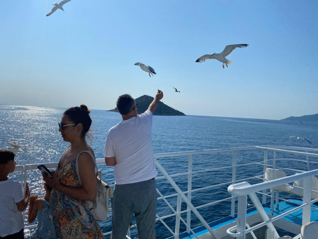 Kaldığımız yerden yirmi dakikada geldik saat 09.00’da Keramoti limanından kalkacak feribota. Aslında biraz daha erken çıksak bir önceki feribota yetişebilirmişiz. Hafta sonu olduğundan feribot tıklım tıklım doluydu otomobiller ile. Herkes dönüş yapıyor bizim gibi demek ki. Yarın mesai başlayacak. Martılar eşlik ediyor gelişimizdeki gibi. Atila İlhan’ın Ağustos Çıkmazı şiiri geliyor birden aklıma..“Beni koyup koyup gitme, n\’olursun/ Durduğun yerde dur/Kendini martılarla bir tutma/ Senin kanatların yok/Düşersin yorulursun/Beni koyup koyup gitme, n\’olursun”Oysa Temmuz ayındayız ve benim bu sözü söyleyeceğim kimse de yok! Bir martı da uzaklaşmanın hüznünü yaşar gibi bakıyor bir süre konduğu feribotun üzerinden denize. Belki yorgun kanatlarını dinlendirmek istedi, bir soluklanma anı. Belki biz insanlara özendi nasılmış buradan denize gökyüzüne bakmak? Mavilikler arasında kaybolmak? Düşlere dalmak? Sahi martılar düş kurar mı? Bilim ve teknoloji o kadar ilerlemedi daha? Ne kadar az şey biliyoruz kendi dışımızdaki varlıklar hakkında da. Çok şey bildiğimizi sanıyoruz ama yanılıyoruz. Olaylar, olgular doğrulamıyor bazen bildiklerimizi. Ya da örtüşmüyor. Burada da martılara simit gibi hamurlu yiyecekler atma geleneği var. İki kültür benzer. Ya da insanlar dilleri farklı olsa da benzer davranışları sergiliyorlar benzer ortamlarda. Kısa bir an. Zamanın bölünmüşlüğünü yakalıyorum kanat çırpan bir martı ile kanatlarını düzleştiren ve gelmekte olan bir martıyı aynı karede çerçeveliyorum. Sanki aynı zamanda gelen, diden gelecek olan bir arada gibi. Ya da geçmiş, şimdi ve gelecek aynı anda kesişmiş gibi. Fotoğraf makinesi olsa enstantane ayarı ile bunu yakalamak çok kolay. Gerçi bu akıllı mobil telefonlar da bunu az da olsa yapabiliyor.